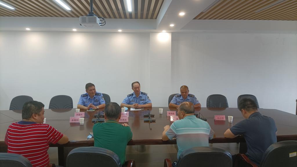 7月30日下午,白云区太和镇派出所所长游定斌、副所长罗焕明,社区民警蔡伟能等一行3人来校检查督导暑期校园安全工作。学校副董事长胡思虎、肖海,保卫处、园大公司负责同志陪同检查督导并参加座谈会。